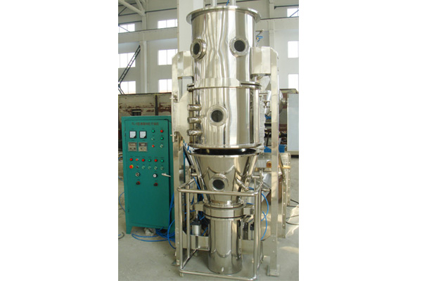 流化床分风板做成特殊环形片式结构,各片形成层叠形式,让气流从叶片的间隙通过,形成环流状的高速气流,从而使物料呈旋涡状似的规则运动,通过安装在侧壁的气动喷嘴将粘合剂或包衣液喷入规则流物料层,从而将粉体制成颗粒或得到连续均匀的膜衣。